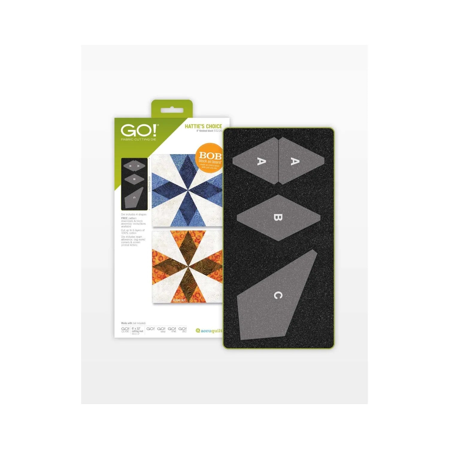 Use the GO! Hattie’s Choice 8” finished die to cut one 3-color 8” block in one pass through your AccuQuilt GO! Big, GO! or GO! Me cutter. Piecing features, step-by-step sewing instructions and a free pattern get you started down a creative quilting path. The die is fat quarter-friendly and designed for intermediate and above quilters.