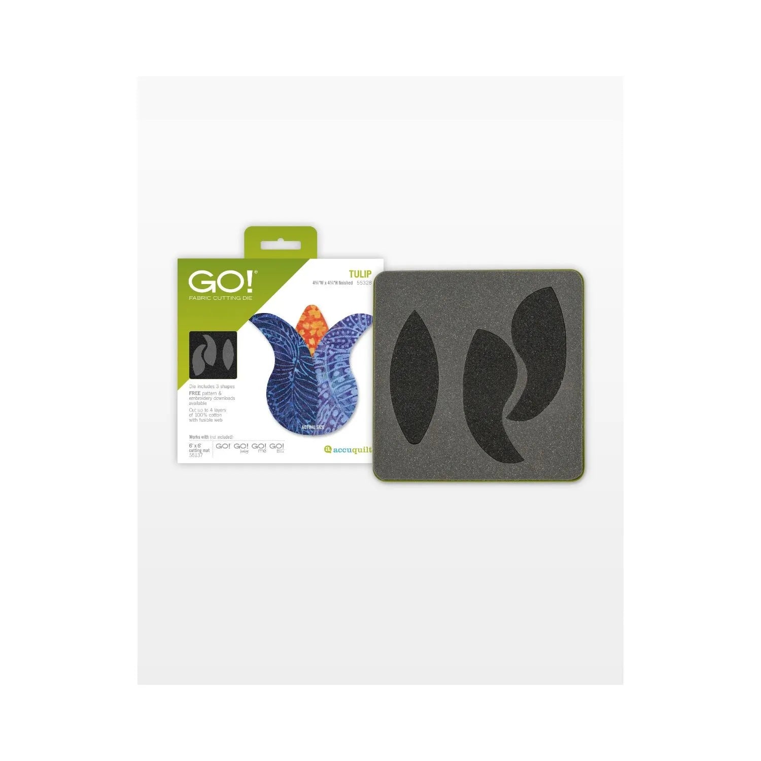 Spring has sprung! The GO! Tulip die cuts two perfectly precise petal shapes to make one gorgeous tulip. Apply fusible web to the wrong side of your fabric before cutting and you'll have applique-ready tulips in a flash. A great way to use scraps or stash!