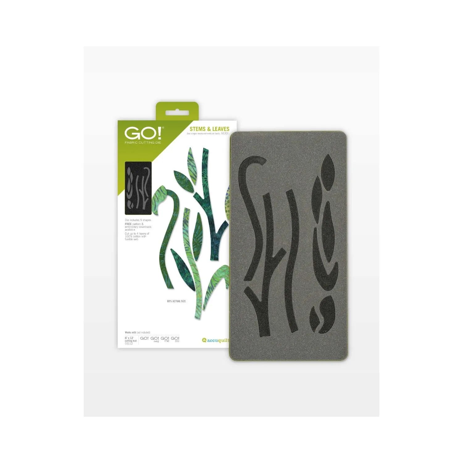 Let your creativity flower. The GO! Stems and Leaves die lets you create a whole jungle-full of flowers and vines in a flash. It precisely cuts three different stems and six sizes of leaves in a variety of shapes. Multiple layers of fabric is no problem for the razor sharp, yet ultra-safe, blades on this cutter. Use the versatile leaves as flower petals or combine stems to make them longer and cover the overlapped areas with leaves. Make a quick applique by applying fusible web to the wrong side of fabric, then cut shapes with this die.