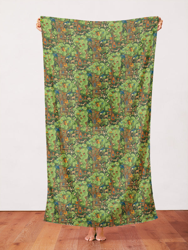 Animal Village Treehouse from the Forest Fables Collection - Paintbrush Fabrics
