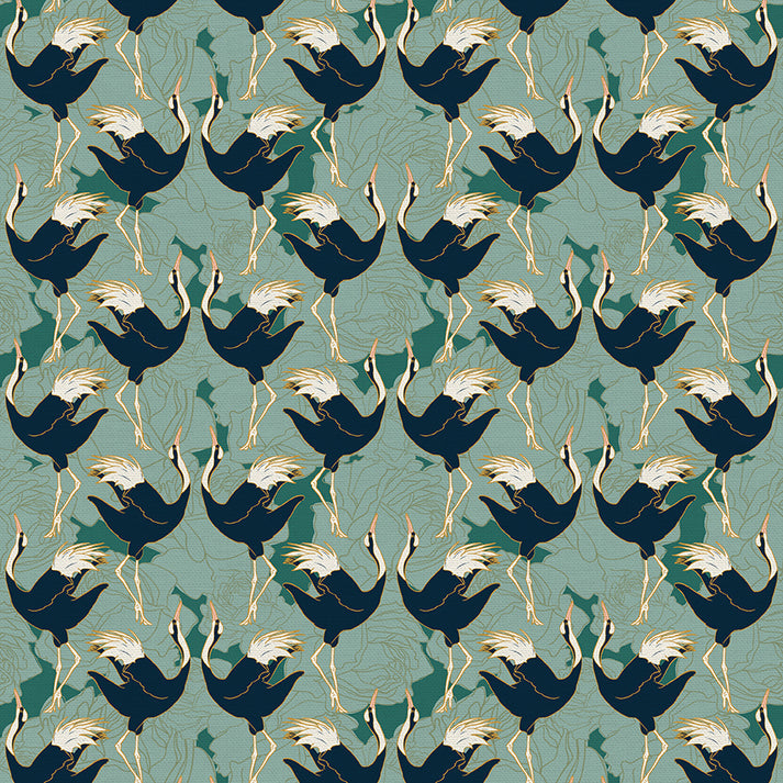 Cranes in Green from the Year of the Snake Collection - Paintbrush Fabrics