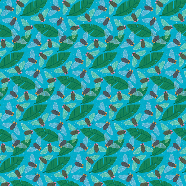 Flies in Blue from the Backyard Bugs Collection - Paintbrush Fabrics
