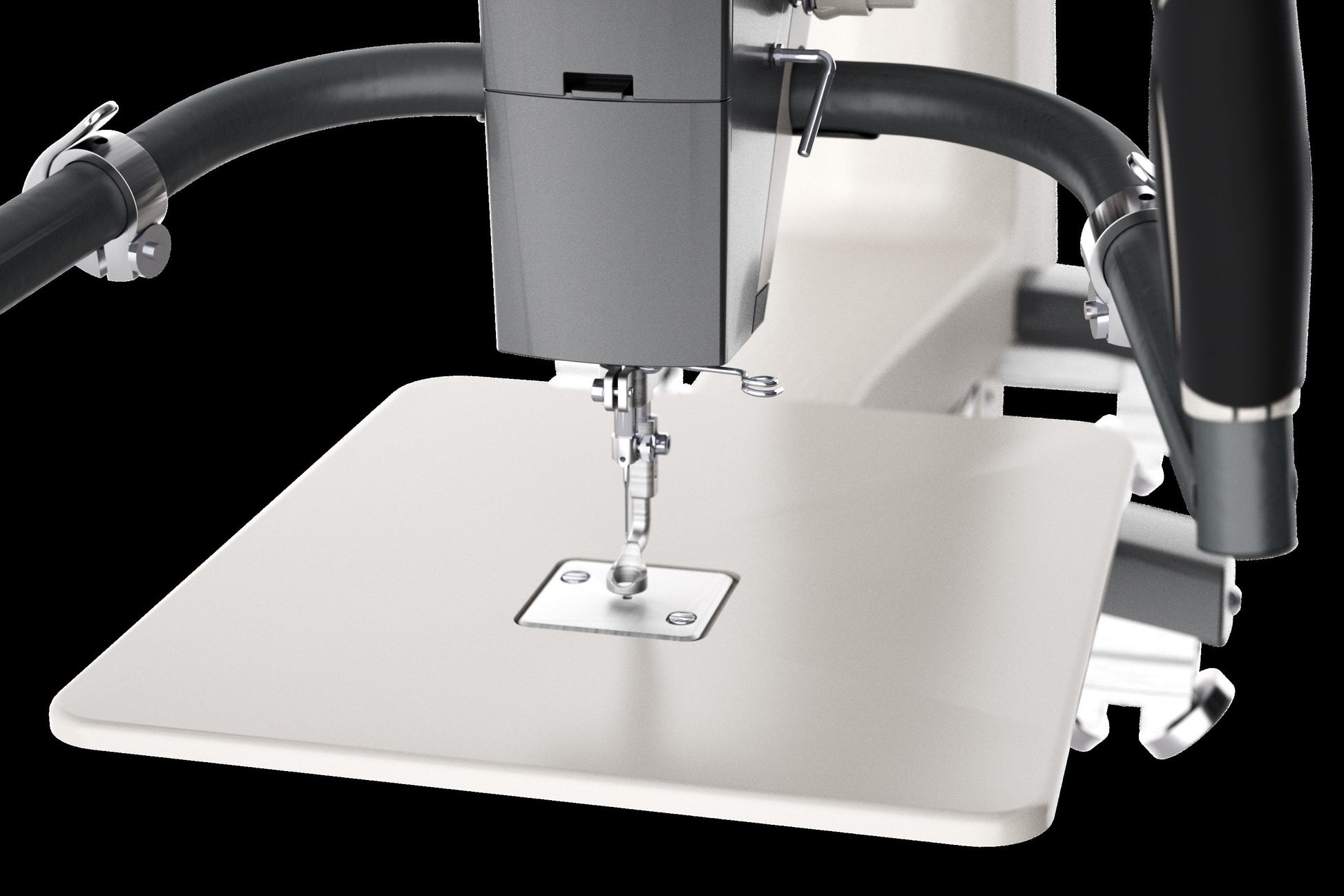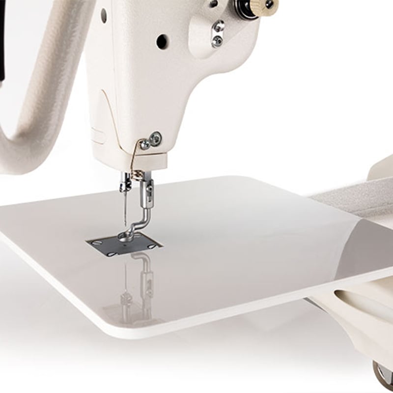 Add this sturdy ruler base when machine quilting on your frame to use quilting rulers, straight-edges and templates. This can be easily attached to and removed from your Qnique machine. The ruler base adds a stable surface around the needle, under the quilt, so you can use templates and rulers in ways that would not be possible on fabric alone.