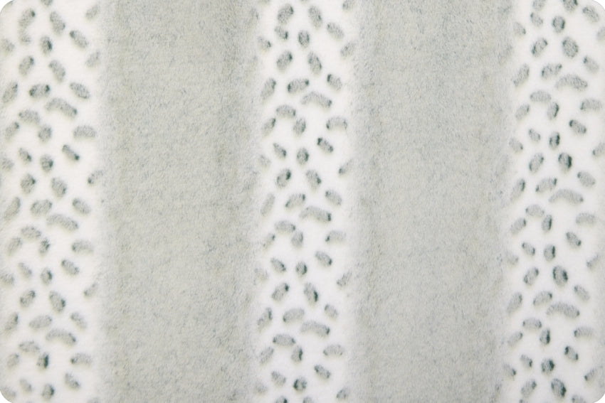 Rabbit fur is arguably the softest most plush fur in the animal kingdom; nothing compares.. Until now! Wait until you feel our Luxe Cuddle® Alaskan Bunny minky. It is so deliciously soft and dense you won't be able to stop petting it! We meticulously recreated the perfect rabbit pelt with our 100% polyester minky fabric and then printed the classic markings of the Alaskan Bunny on the imitation pelt. The Alaskan Rabbit's fur is naturally white, to blend with the snow, and has gray or brown markings to camouflage with the rock outcroppings. Its fur is amazingly soft and warm due to the region it comes from; and our Luxe Cuddle® Alaskan Bunny has the same wonderful characteristics. Build beautiful apparel, home decor, or even elegant soft crafts with this amazing minky!