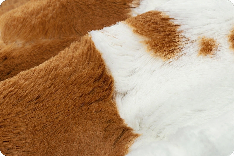 Mooooove on over, this just might be our favorite Luxe Cuddle® yet! Named Luxe Cuddle® Calf, this fabric features a beautiful two-toned shading technique inspired by the unmistakable markings on a cow. Its embossing is similar to our popular Luxe Cuddle® Hide fabric, and has a 10 mm pile that’s just as luxurious as it is beautiful. Don’t get confused, this is not a faux fur, and we think it’d be great for anything from throw blankets to wearable infinity scarves!
