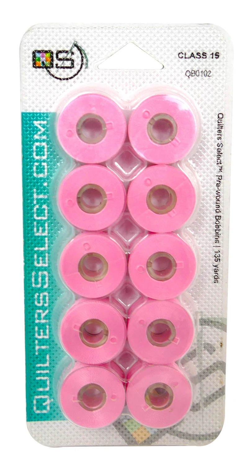 Quilter's Select Prewound Class 15 Bobbins LIGHT PINK- 80 weight