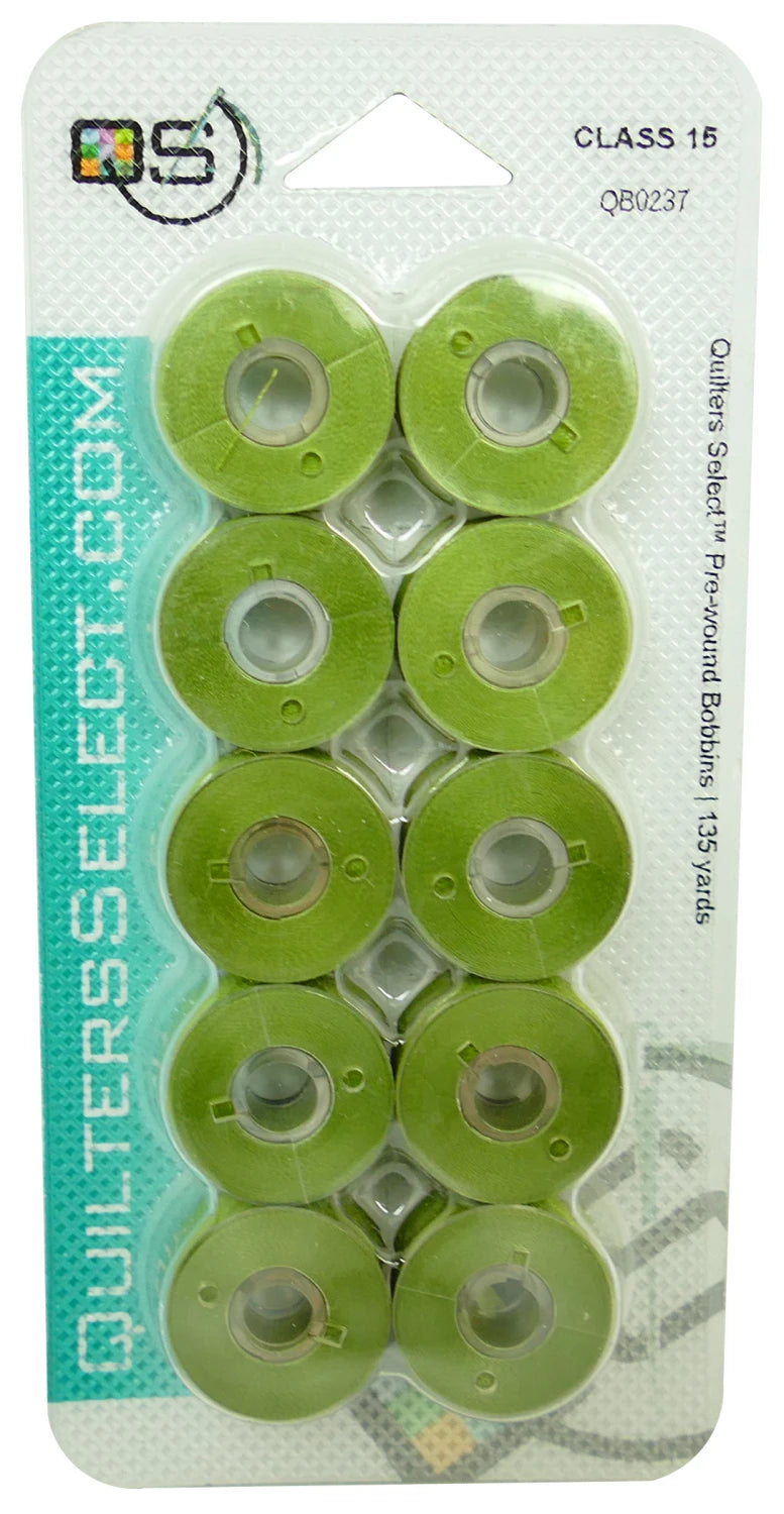 Quilter's Select Prewound Class 15 Bobbins BEAN GREEN - 80 weight