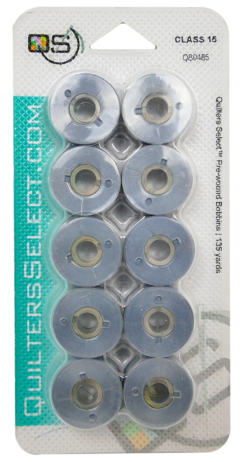 Quilter's Select Prewound Class 15 Bobbins15 BOBBIN-COT/POLY GRAY- 80 weight
