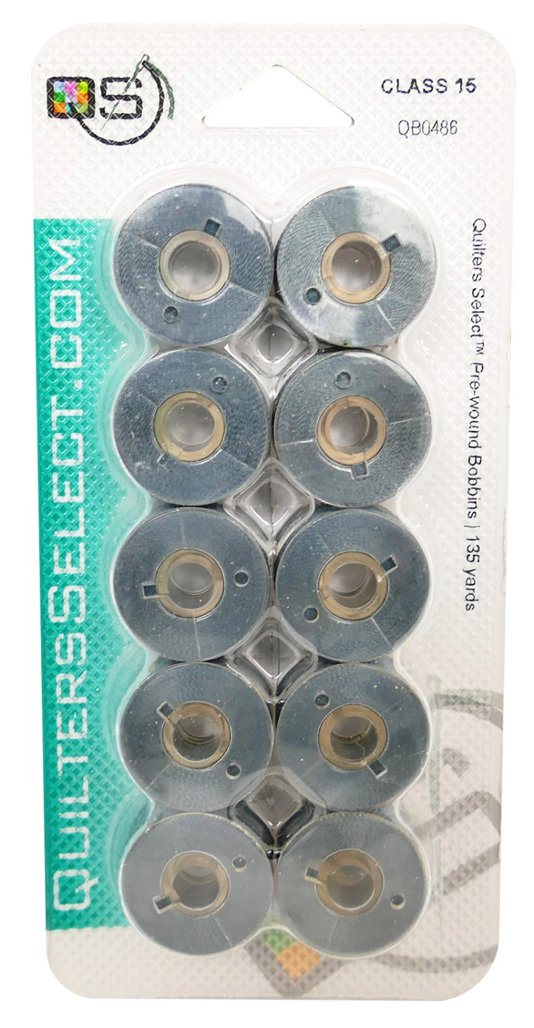 Quilter's Select Prewound Class 15 Bobbins SLATE GRAY- 80 weight
