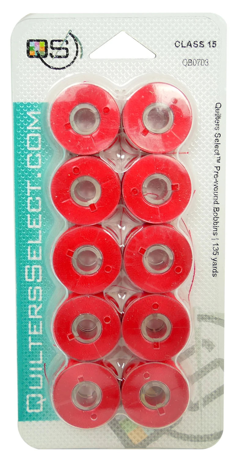 Quilter's Select Prewound Class 15 Bobbins RUBY RED- 80 weight