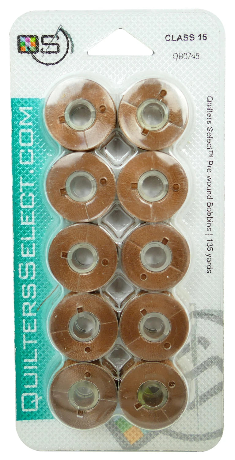 Quilter's Select Prewound Class 15 Bobbins HARVEST BROWN- 80 weight