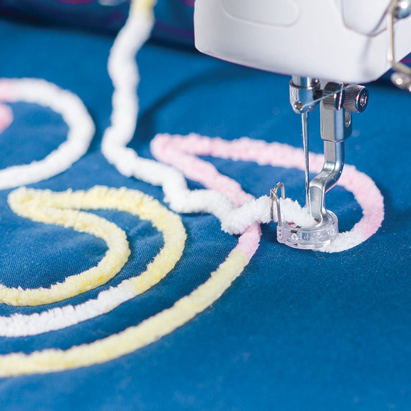 - 3 couching feet for yarns of different thicknesses